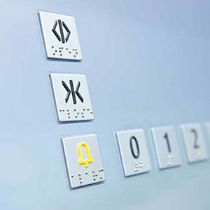 Produktfamilie von verschiedenen Bedien- und Anzeigeelementen für Liftkabinen.
