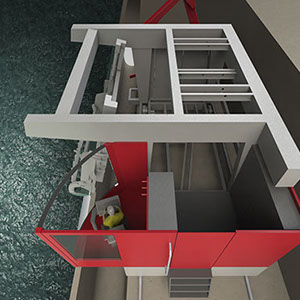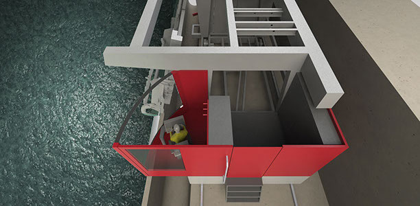 Kabinenkonzept für die Rechenreinigungsmaschine des Flusskraftwerkes Flumenthal.