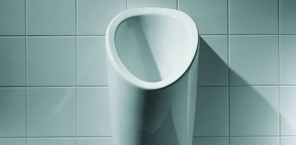 Urinal "Lema" für öffentliche Sanitäranlagen mit innovativem Siphon und Wasserlos-Technologie.