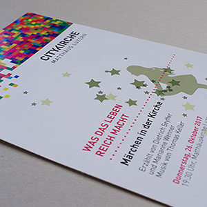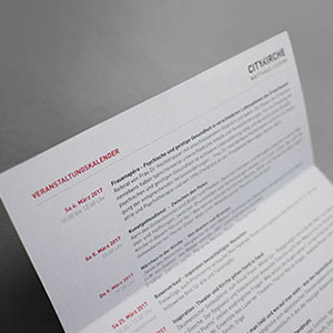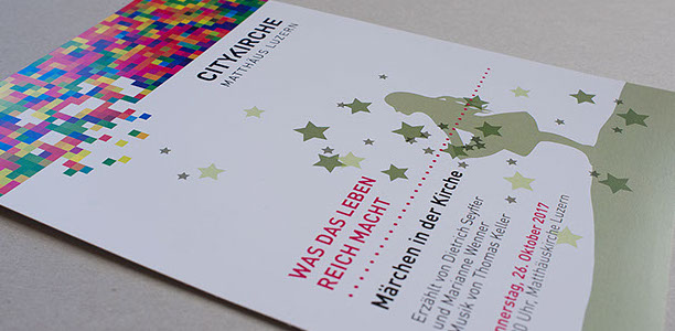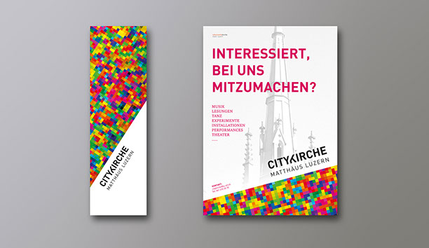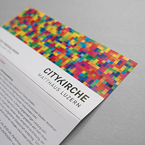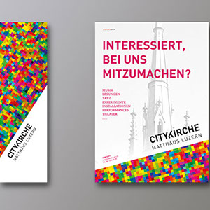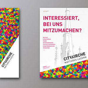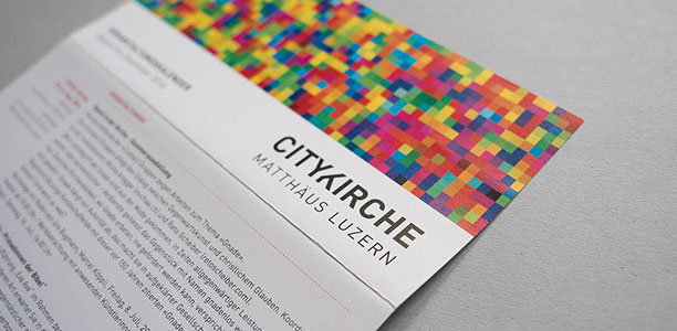 Neues Erscheinungsbild, Logo Entwicklung und Gestaltung diverser Drucksachen für den Bereich Citykirche der Matthäuskirche in Luzern.