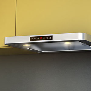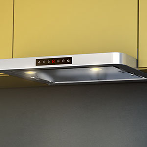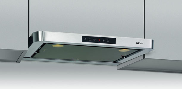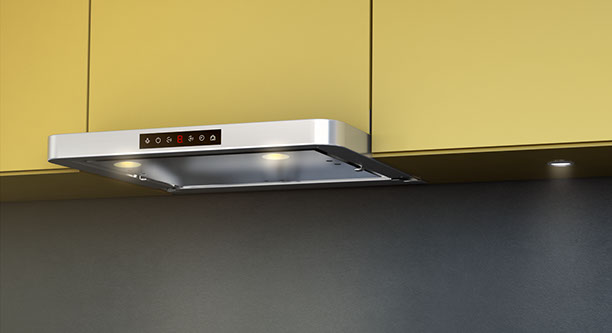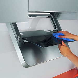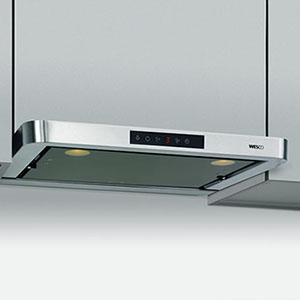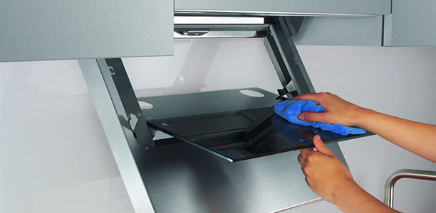 Einbauhaube mit optimierter Schalldämmung und innovativem Klappmechanismus für die einfache Pflege und Reinigung.