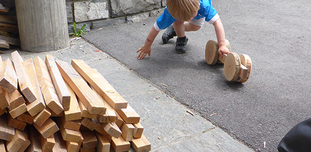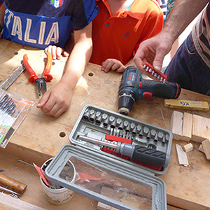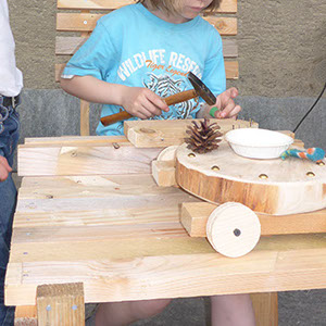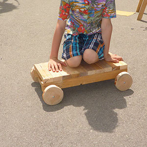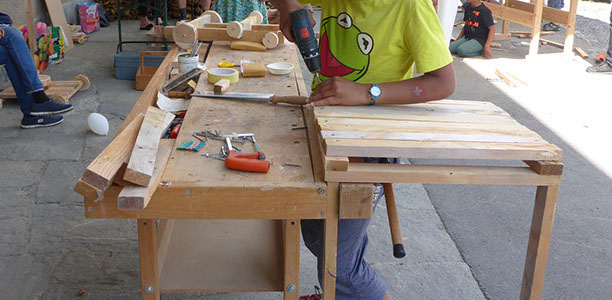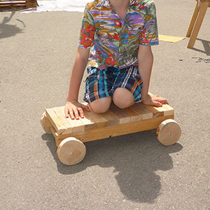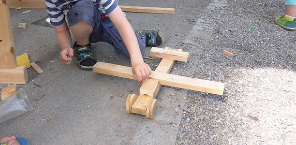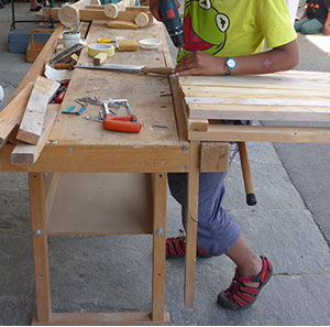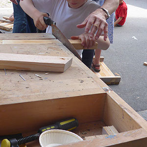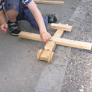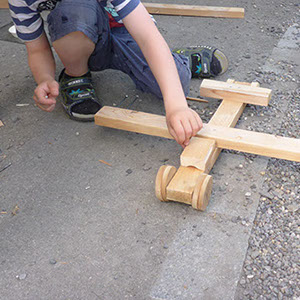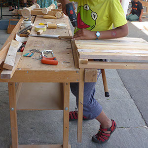 Bauen von Gegenständen, Skulpturen und Möbeln mit Dachlatten aus Restbeständen.