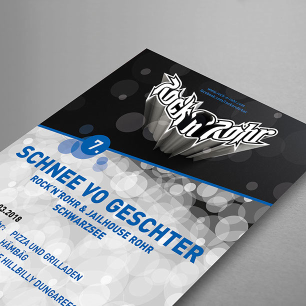 Programmflyer für die Rockbar im Freiburger Oberland.
